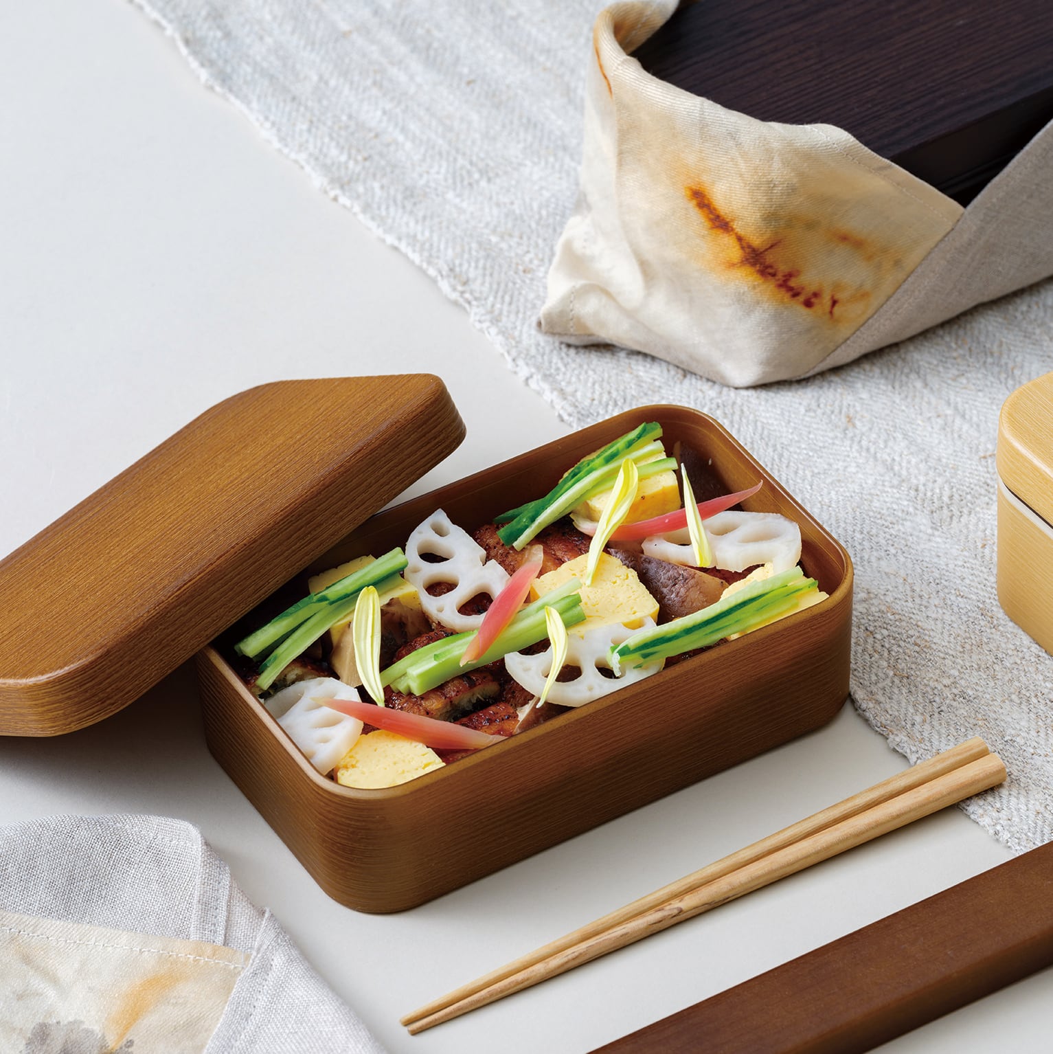 Woody plus弁当箱シリーズにぴったりな木目調の箸箱セットです。