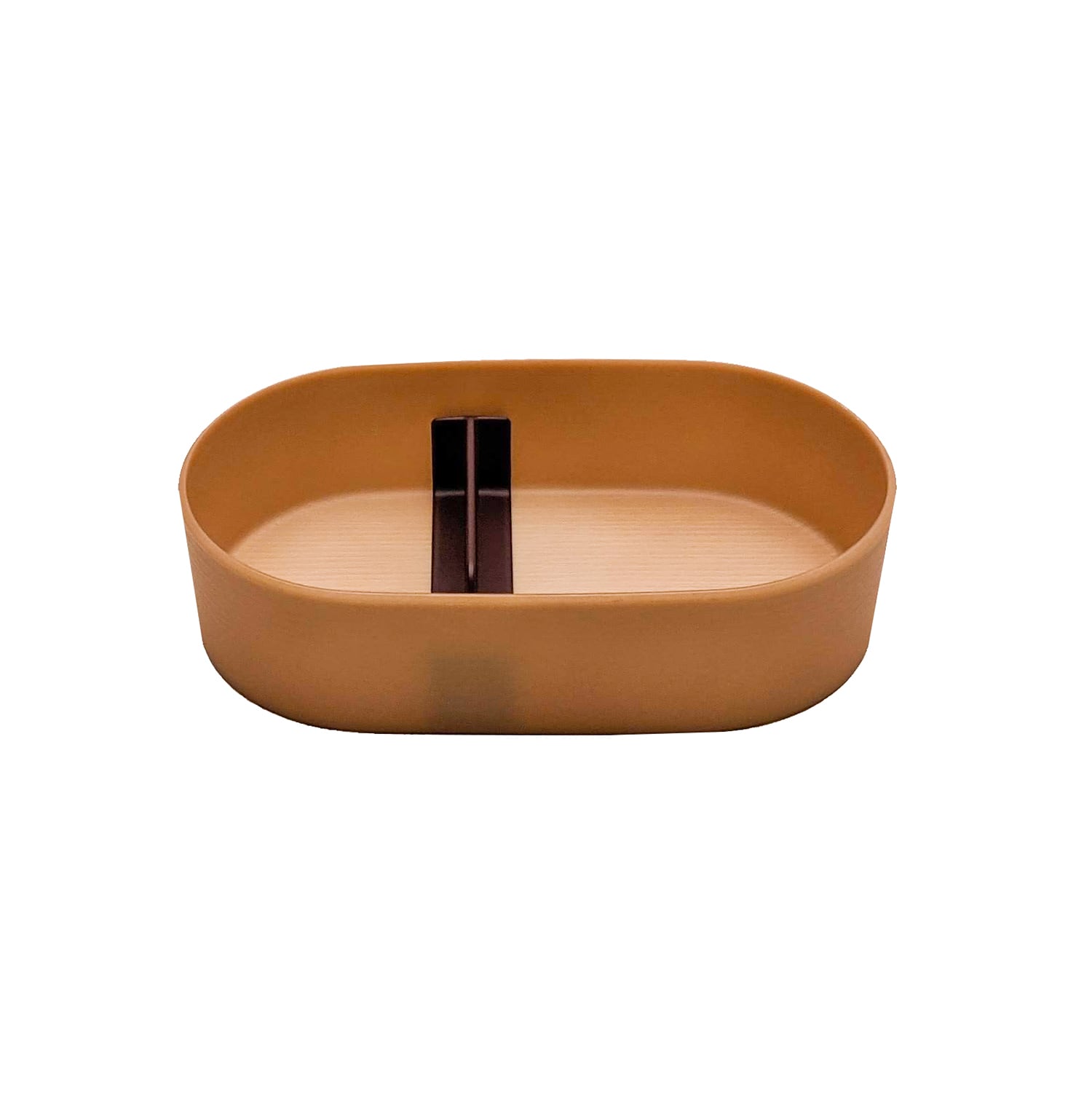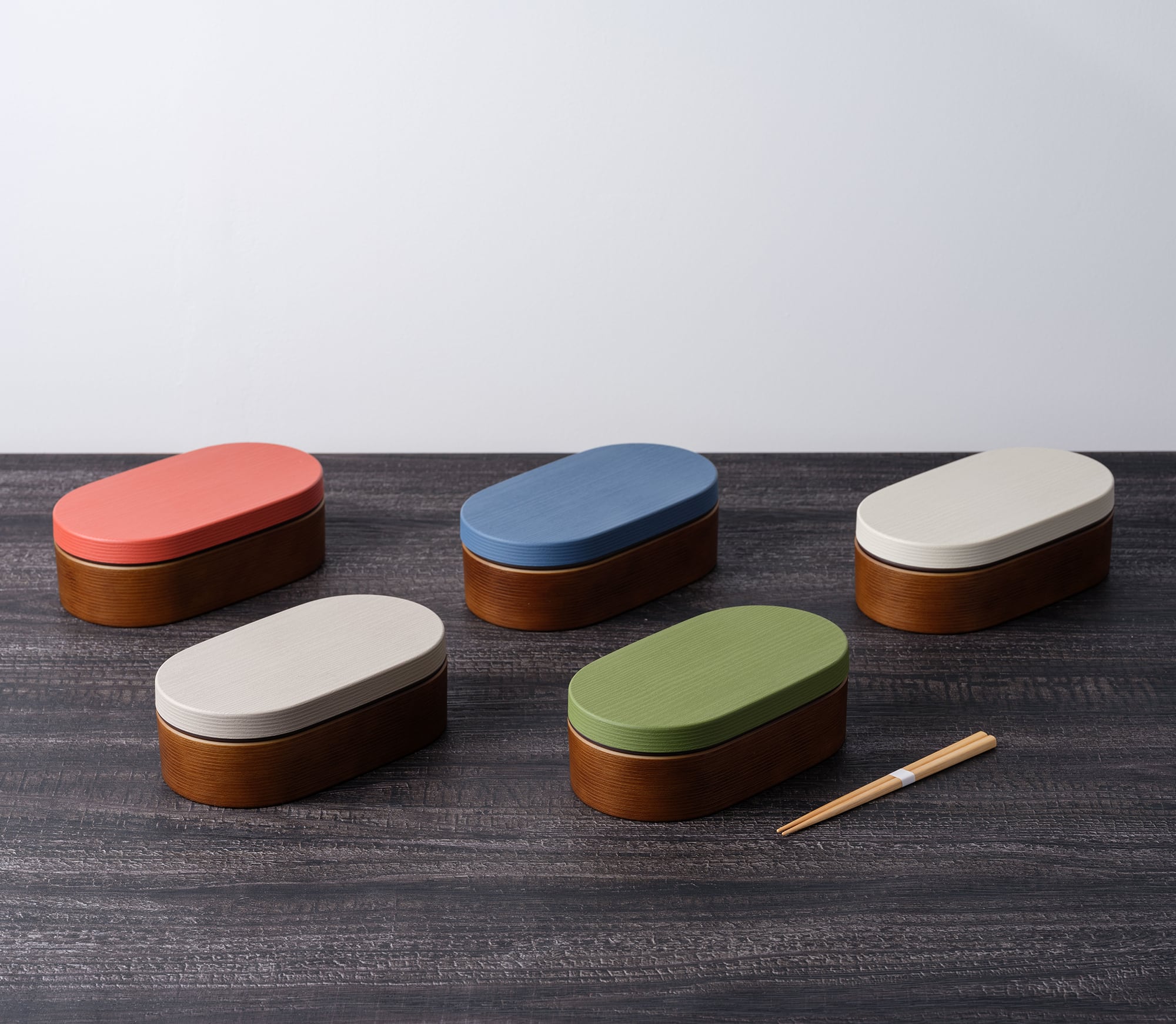 シンプルな木目調の1段弁当箱、人気の小判型に容量800mlのLサイズが登場!