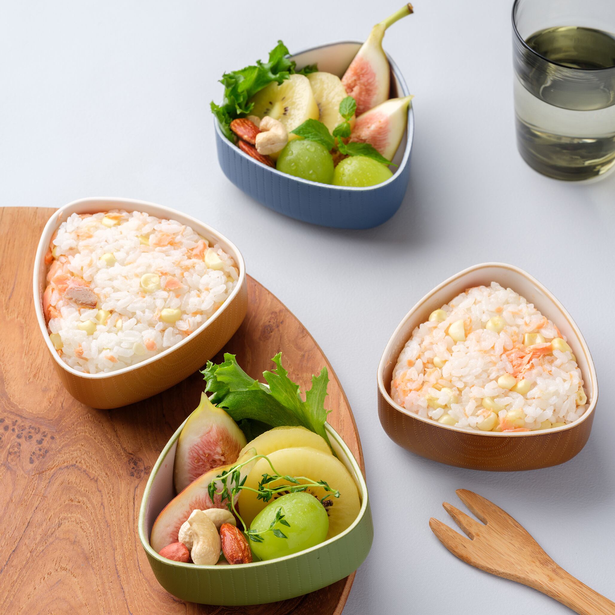 Woody plusシリーズにデュアルタイプのおにぎりケースが登場。おにぎりだけでなく副菜やフルーツ用のお弁当箱としてもご利用いただけます。