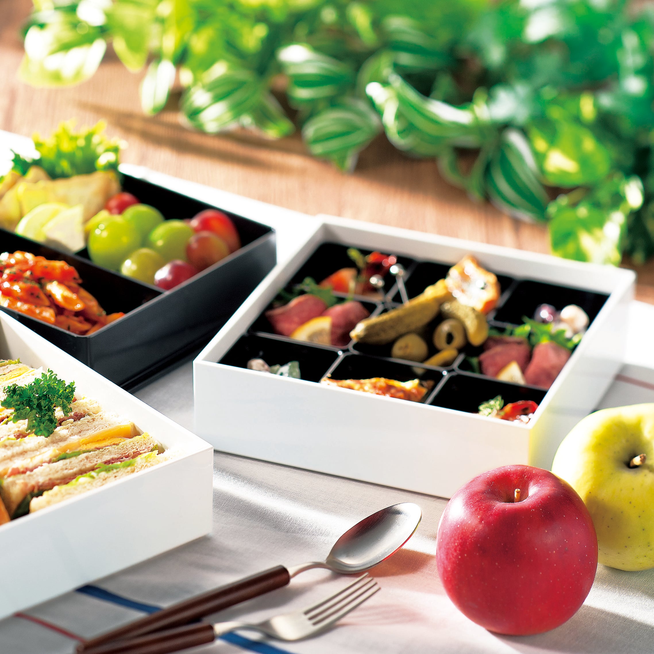 *サイズ:18cm×18cm×16.7cm *容量:3分割容器1200ml、重箱1350ml×2個